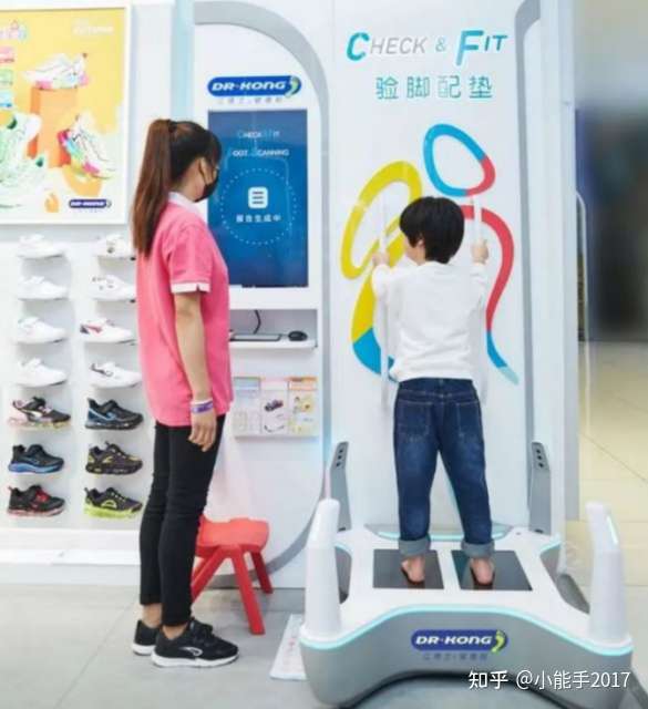 值得一提的是,江博士还提倡“买鞋前,先验脚”的免费验脚服务。门店均设有自主研发的3D智能验脚仪,4岁及29码以上的孩子根据店员的指引,站在验脚仪上,多部深度相机能够全方位地拍摄孩子双足的立体脚形,从中读取足印、足弓、后跟幅度、拇趾外翻的数据,并评估数据识别出孩子脚型,根据专业数据和不同足部情况,匹配出最适合孩子足弓幅度及后跟斜度的足弓承托垫。