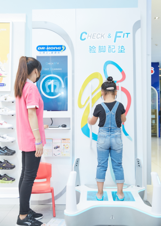 如果家长不清楚孩子足型,可以通过复旦大学附属华山医院和江博士健康鞋联合开发的“3D智能验脚仪”进行验脚。江博士倡导“买鞋前,先验脚”,带孩子来其线下门店,即可享受免费的“验脚配垫”服务,验脚仪会360°观察双足情况,多维度读取足部数据,识别出孩子脚型是足弓扁平、高弓足、还是正常足,并根据数据配置合适的江博士鞋垫。
