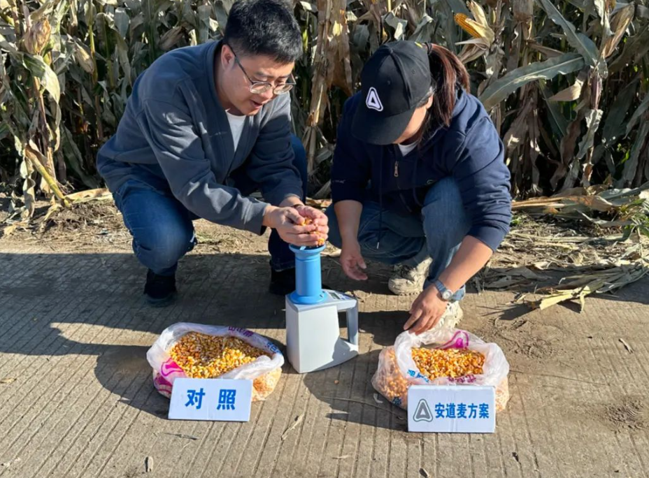 在试验地块上,我们进行了两次打药,分别是大喇叭口期和抽雄期,在对照地块上,则按照农户过往的习惯,除了初期打一次除草药以外不再进行任何处理,并最终通过取样测产的方式,对比产量与品质上的区别。