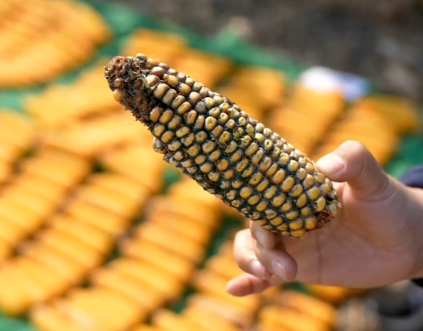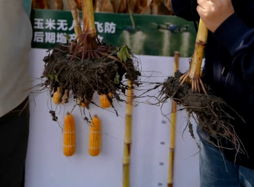 “以前没有打药的习惯,到了后期玉米(植株)比人还高,人工打不了药,打药车也很难进去,但用农业无人机就能解决了,而且还省时省力。你看用飞机打过药的玉米棒,颗粒饱满,秃尖和穗腐的明显也更少。”