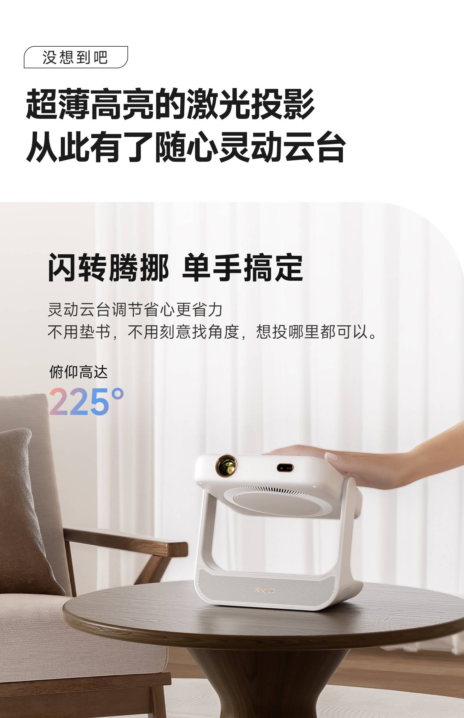 投射设计上,极米配备360°万向云台,支持天花板、墙面等多角度投射,适应复杂场景;当贝则采用225°俯仰调节云台,覆盖多数家用需求,并通过游戏模式与DeepSeek动态优化算法,兼顾低延迟游戏体验与专业色彩校准。此外,当贝的无广告投屏功能更贴合追剧、办公等高频使用场景。