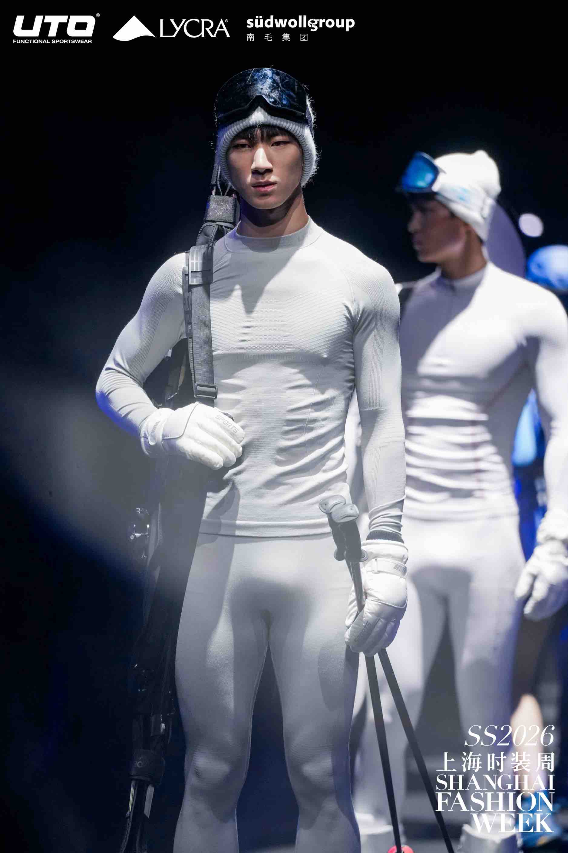 作为“无界”理念的延伸,UTO本次大秀的合作矩阵堪称亮点。品牌携手全球纤维科技领导者LYCRA®(莱卡®)品牌与与享有盛誉的Südwolle Group (德国南毛集团)品牌,共同打造这场科技与美学的盛宴。南毛集团作为全球知名的全羊毛和羊毛混纺类精纺纱线供应商,其高品质的天然原料为UTO产品带来了绝佳的亲肤触感与环保属性;而LYCRA®(莱卡®) 纤维提供的卓越弹性与持久舒适度,则确保了时装化设计的同时不失运动所需的自由感;此外,UTO贴身层更有THERMOLITE® ALL SEASON纤维的加持,其创新型纤维结构可以感应微环境变化, 保暖控湿,为穿着者提供全天候的温暖舒适的穿着体验。THERMOLITE® 品牌作为全球领先的轻质保暖科技品牌,致力于为消费者提供温暖、干爽与舒适的穿着体验。